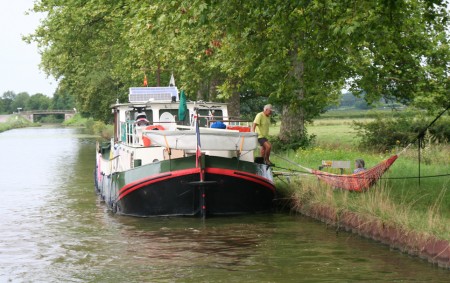 nous croisons Tabatha en plein travail; leur site très documenté sur le fluvial www.letabatha.net